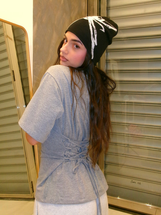 CAMICIA EFFETTO BUSTINO IN COTONE GRIGIA