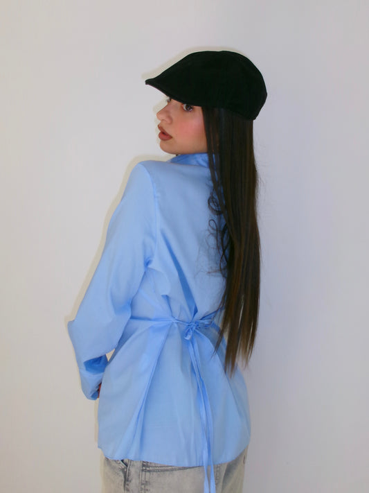CAMICIA EFFETTO BUSTINO IN COTONE AZZURRA