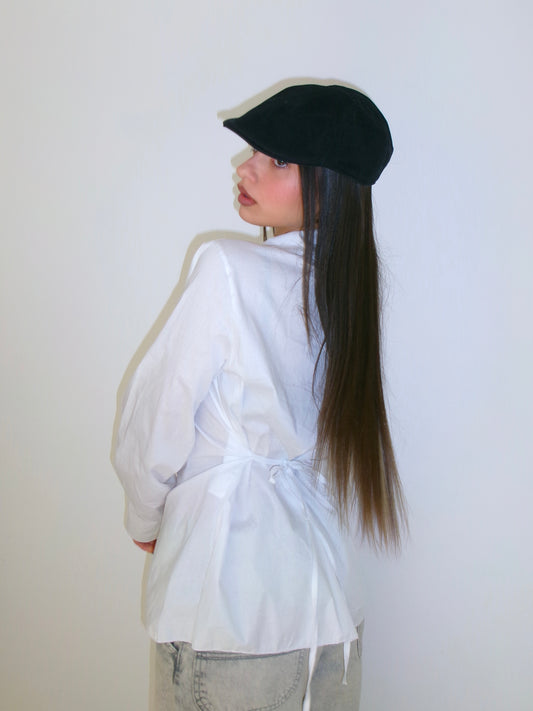 CAMICIA EFFETTO BUSTINO IN COTONE NERA